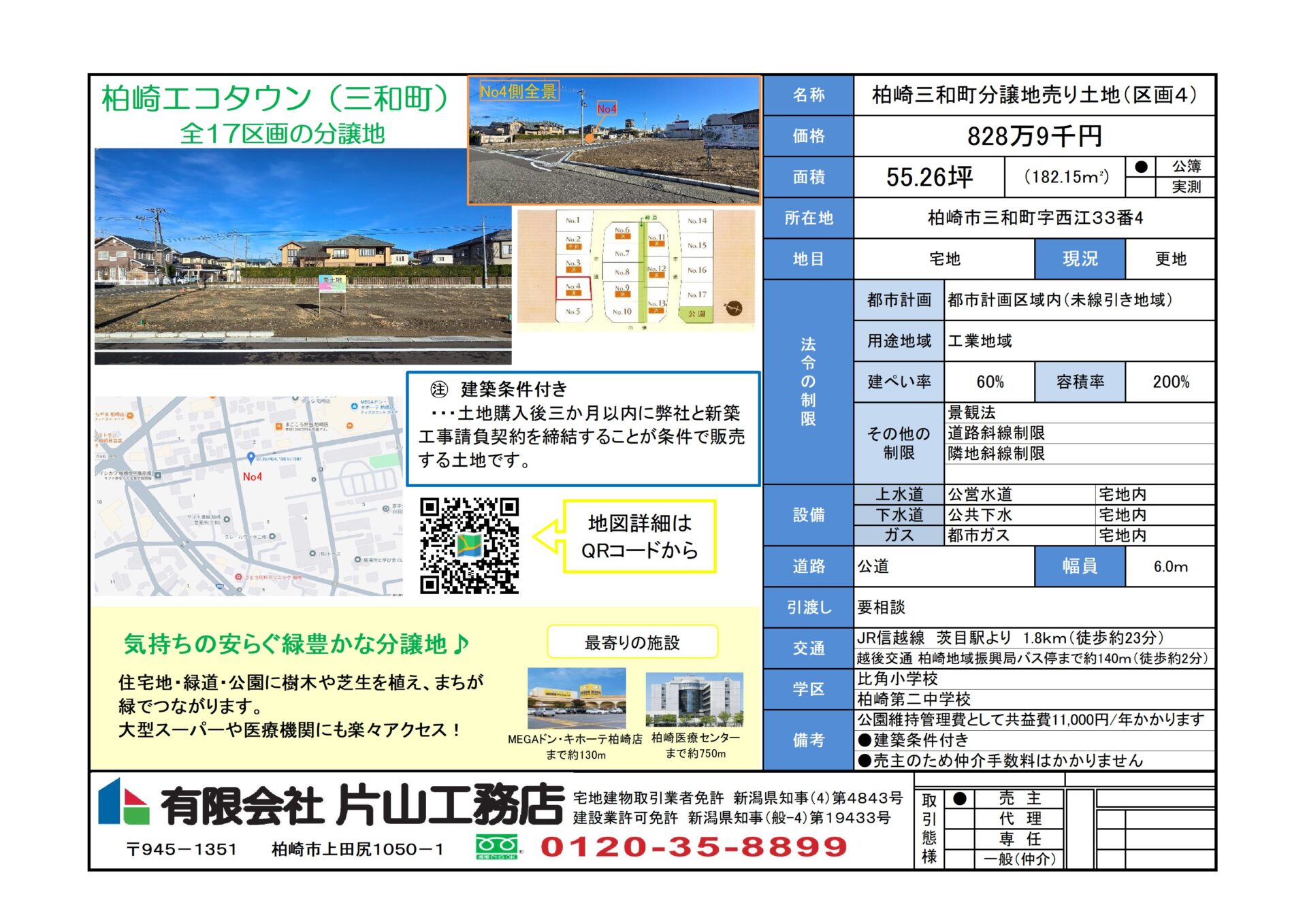 柏崎市三和町エコタウン区画4 不動産広告 区画4 現地写真① 現地写真② 分譲地全景 分譲地内公園 物件情報 価格8,289,000円住所新潟県柏崎市三和町字西江33番4アクセス越後交通 柏崎振興局バス停まで約140m(徒歩約2分) JR信越線 茨目駅より 1.8km(徒歩約23分)面積55.26坪(182.15㎡) 不動産広告PDFダウンロードはこちら 現地のGoogleMapのURL https://maps.app.goo.gl/SS7MYYH8K1jYdqjw7 お問い合わせ 土地・物件名 お名前 フリガナ お電話番号 メールアドレス メッセージ 上記の内容で送信します Δ 前の不動産情報 土地販売情報 柏崎市三和町エコタウン区画12 一覧にもどる