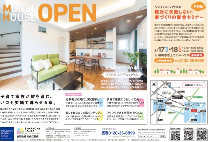 そして3月最後のイベントは3月31日・4月1日(土・日)に実施するO様邸の完成見学会プレオープン。ラッキーペンシル抽選会に参加いただいたお客様優先で、先駆けてシンフォニーハウスが建てた家を見学することができます。ご興味がある方はぜひ足を運んでみてください!